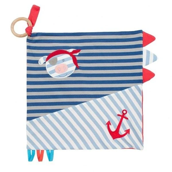 Pour les bébés bio, et dès la naissance, Eveil, confort & réconfort avec ce Doudou Plat Lange ‘Blankie’ Organic Farm Buddies™ Cochon Pirate Apple Park™ avec anneau de dentition. Un doudou plat et fin comme les langes où les bébés aiment se frotter, d’une taille rassurante (36 cm de côté), ou bébé pourra trouver de quoi s’amuser entre anneau de dentition, étiquettes, étoffes colorées, et bien sur la tendre et déjantée bouille de notre Cochon Pirate. Un doudou Organic Farm Buddies™, amusant et protecteur pour accompagner bébé dans ses premiers moments de joie et pour le consoler. Un doudou plat simple comme un carré de tissu (Lange), coloré et déluré comme les petits amis de la gamme Organic Farm Buddies™ de chez Apple Park.