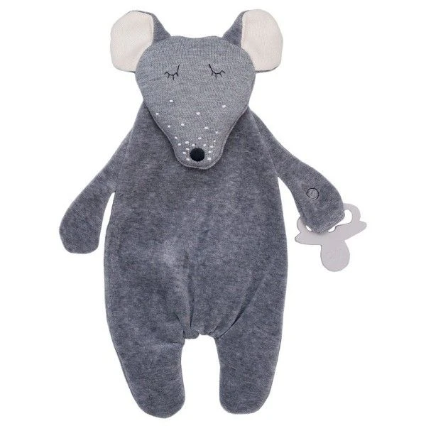 ✎ Les Doudous Plat Attache sucette Souris Grise Wooly Organic® Coton Bio 35 cm se composent et sont: