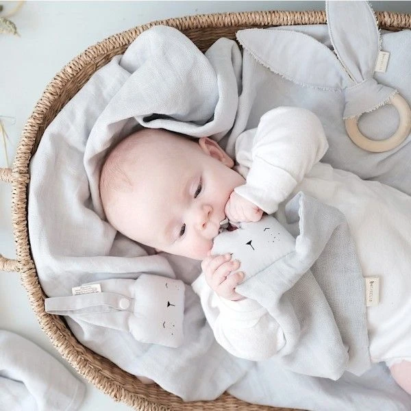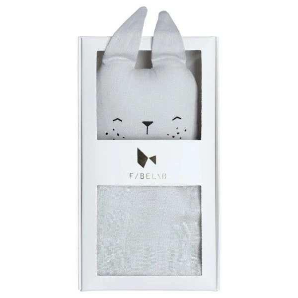 Pour les petits bébés écolo, et dès la naissance, Eveil, douceur et réconfort en compagnie de ce super Doudou Plat Carré Lapin Gris Argent Fabelab® Coton Bio GOTS de couleur gris argent. Un superbe doudou Bio, souriant, rayonnant de bonheur et de grâce, et aussi prêt à affronter le monde en compagnie d’un tout petit. Un doudou de forme carrée en Lange de coton bio,avec 4 angles faisant office de pattes et idéales pour mâchouiller. Un doudou pour les bébés dès le premier age, avec une jolie bouille sympathique, simple, douce et tendre dont les traits d’expression assez neutre, lui confère cette identité unique. Facile à saisir, à câliner grâce à ses appendices variés (oreilles, bras, jambes), notre Doudou Lapin Gris, saura prendre soin de bébé, et lui apporter douceur et réconfort.