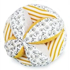 Balle Sensorielle Avec Hochet Fleuri-Ocre 15cm Coton Bio Doudou Et Compagnie® – Doudou Bio Français