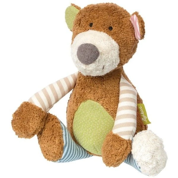 ✎ Les Peluches Coton bio Sigikid® Ours Brun Patchwork Green 29 cm détail