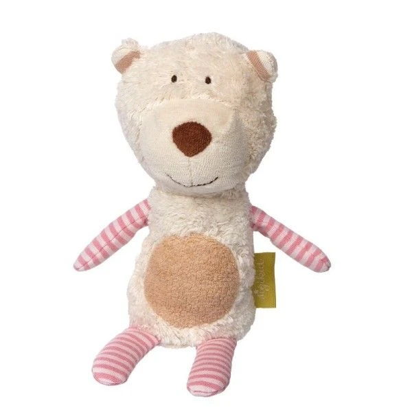 Pour les petits bébés écolo, et dès la naissance, Eveil, confort & réconfort en compagnie de cette jolie Peluche en coton Bio Sigikid® Petit Oursonne polaire écolo en velour de coton 100% Bio ‘Organic’ (Kba: Agriculture Bio Contrôlée) et rembourrage fibre naturel bio (laine de mouton) ‘Peluche Velour Coton Bio Sigikid® Petit Ours Polaire 22 cm’ de la gamme ‘Green‘. Une Jolie petite peluche Ours Polaire toute blanche avec le ventre beige, et les pattes rayées rose et blanche,… tendre et sympathique. Protecteur de la nature et défenseur du développement durable, bébé le revendique avec cette peluche rose et blanche… douce, tendre, protectrice, Chic & écolo. Les boucles de velours de coton bio à la texture douce de notre Oursonne Polaire, offrent des sensations tactiles et visuelles inoubliables. Avec son pelage beige et blanc écru, son petit ventre où il est agréable de se frotter, ses longues pattes permettant de ne pas la lâcher, ses petites oreilles où lui raconter des secrets, et sa bouille câline, maline et amusante, cette belle peluche, Chic et Bobo est facile à agripper, et prêt à voyager. En compagnie de ce doudou peluche Bio en coton, rempli de Laine naturelle, bébé est prêt à affronter le monde, en douceur, en couleur et en sécurité: La Peluche est en coton à 100%, un Coton Bio issu de l’agriculture Biologique (Kba : Agriculture Biologique Contrôlée).