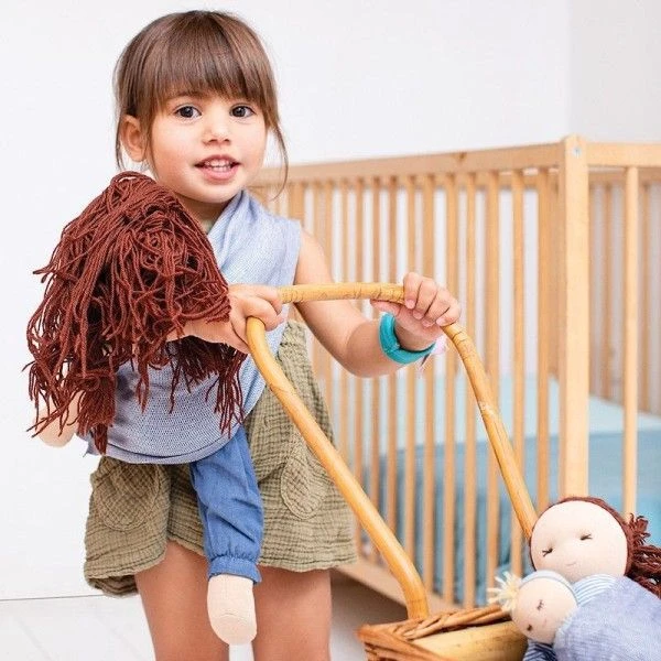 Je suis une poupée en coton biologique, produite de manière éthique et éco consciente. Mais je ne suis pas qu’une poupée de décoration : mes vêtements peuvent se retirer pour aider les tout-petits à intégrer les rituels du quotidien (s’habiller, se changer, aller aux toilettes, mettre des chaussures) et à développer leur créativité. Mes cheveux en laine sont faciles à coiffer, même pour les petites mains. Mon visage garde toujours une expression neutre pour permettre à votre enfant de s’identifier à moi et de développer son imagination (pédagogie Steiner/Waldorf)
