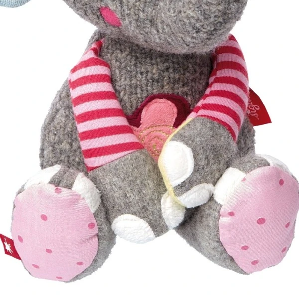 Pour les bébés dès la naissance, câlins doux, charmants, plein de tendresse et de bonne humeur avec cette adorable peluche, Sigikid® Peluche Doudou Eléphante Patchwork Sweety 31cm de la gamme ‘Sweety‘. Une enveloppe composée de différentes étoffes de coton naturel et peluche en micro fibre (synthétique) pour découvrir des textures douces et amusantes, un rembourrage en Polyester pour un entretien facilité et une hygiène optimum et cette mignonne éléphante patchwork, est au top pour apporter diverses expériences sensorielles et affectives aux petits bébés écolos. Des fleurs sur le ventre, des oreilles et des bras rayés trés colorés comme pour éveiller visuellement bébé et lui apporter gaîté et bonne humeur. Avec sa belle trompe, son ventre doux, ses pieds colorés, ses grandes oreilles à secrets et ses multiples appendices à saisir et à mâchouiller, notre Amie éléphante, accompagnera bébé dans ses rires et ses petits moments tristes. Facile à tenir, grignoter ou machouiller, ce doudou éléphante mi coton, mi polyester, sera de toutes les aventures. En compagnie de ce doudou, bébé est prêt à affronter le monde, en douceur et en sécurité: Le Doudou est en Coton Naturel (Notez, ce coton n’est pas certifié issu de l’agriculture Biologique), la tête et le corps de notre éléphante est rembourrée à partir de ouate de coton (polyester) pour un lavage facile et donc une hygiène améliorée, et la jolie fourrure est en peluche micro fibre (polyester)